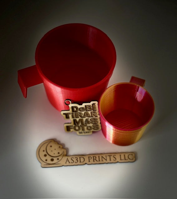 We print our cup on a 3D printer, using a high-quality food safe 100 % PLA. The cup we make are to be washed by hand only in warm soapy water and are not dishwasher safe. Putting the cup in a dishwasher could melt, warp or otherwise damage the PLA. If you want a different size or the cup of a specific color, notify it in your order.